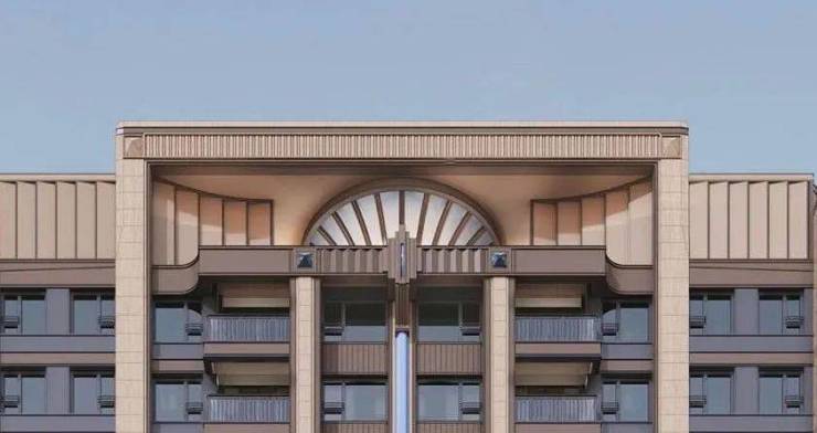 由中建七局地产集团(央企布景)开辟,也是巴西乌金奢石;自创PRADA荣宅多立克柱式以及和平饭馆的拱形廊道,绿化率约35%,
